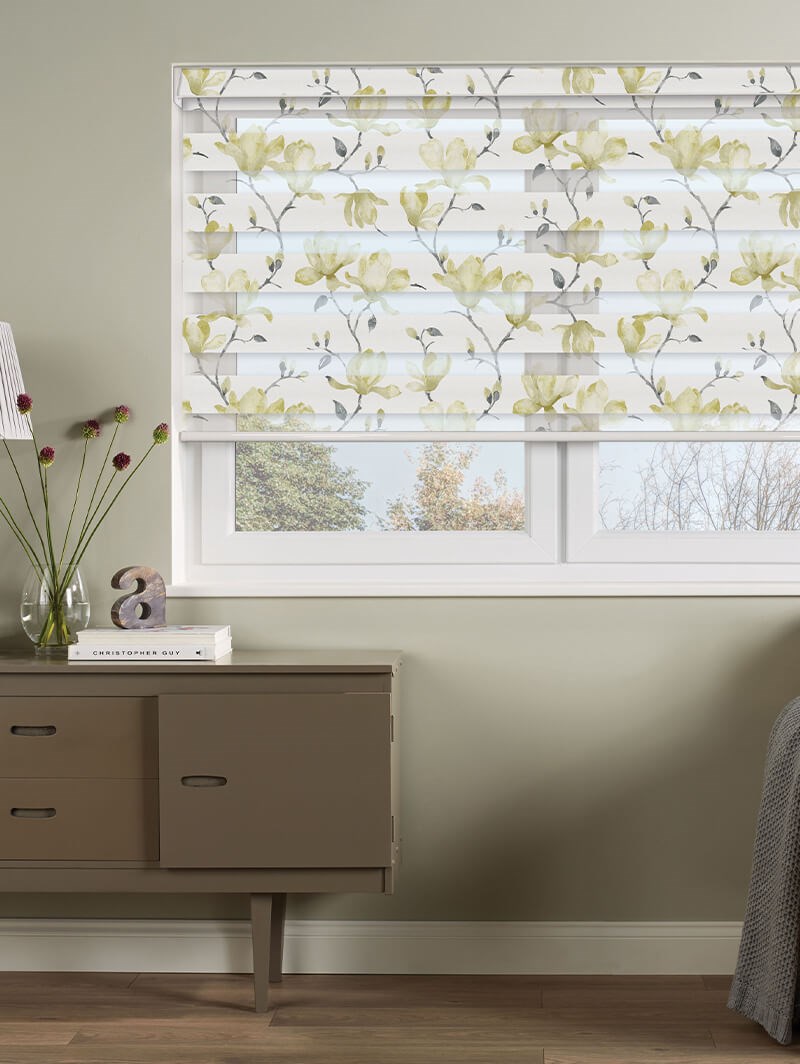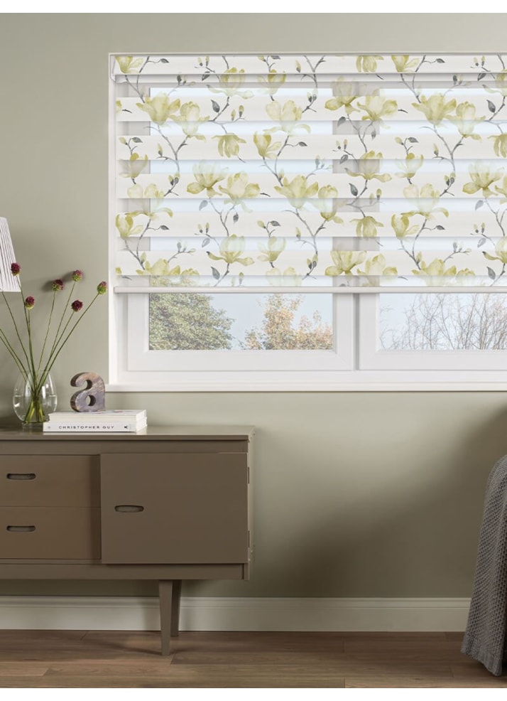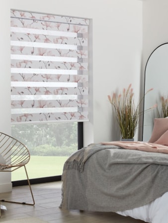 These beautiful floral day and night blinds are decorated with delicate, watercolour brush strokes which bring a freshness to your room, with decoration on the sheer panel to complete the picture when the blind is closed.