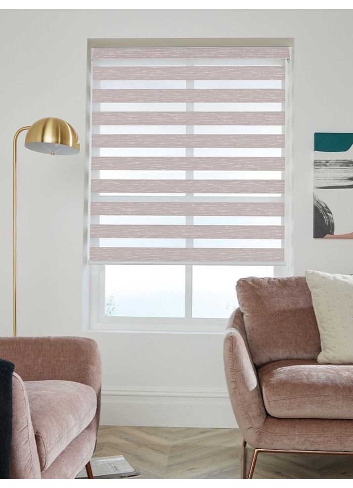 An attractive and innovative solution for many windows, our clever Day and Night blind system works using a looped piece of fabric so that when you raise or lower the blind you can make the alternating sheer and opaque stripes either align or disalign in varying amounts for amazing light control.