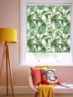 The hottest interiors trend of the last few years, this oversized botanical print stands out boldly from a crisp white background making a truly stunning window dressing option.