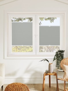 A light smokey grey patterned texture fabric that effortlessly blends into almost any interior aesthetic whilst offering the ultimate blend of functionality. These blinds are expertly crafted to fit directly onto your UPVC frame and offer exceptional versatility, especially as the double handle system allows you maximum adjustability.