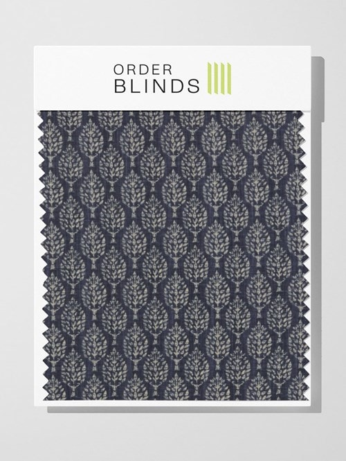 Elevate your decor with the Kemble Sapphire Roman Blind, featuring a repeating tree pattern on a deep royal blue backdrop. Pale grey trees create a captivating and timeless ambiance, adding a touch of natural beauty and sophistication to your space.