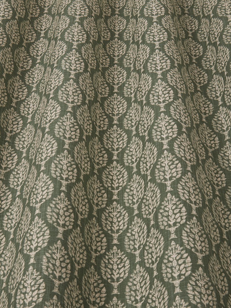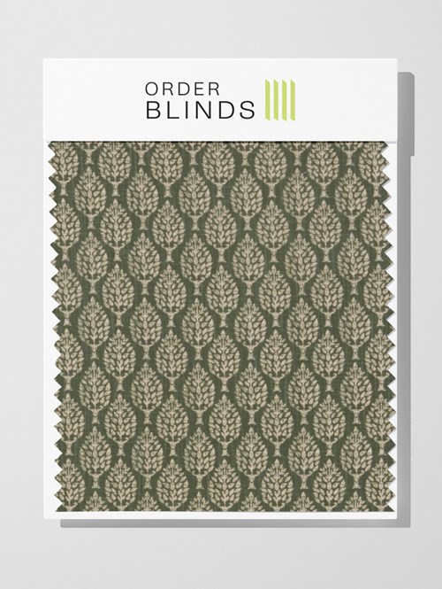 Infuse your space with the calming beauty of the Kemble Spruce Roman Blind, showcasing a repeating tree pattern on a moody forest green backdrop. Pale grey trees create a harmonious and inviting ambiance, adding a touch of natural beauty and sophistication to your decor.