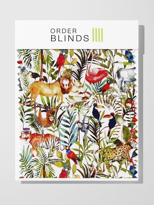 .Transform your decor with the King of the Jungle Safari Roman Blind, featuring a watercolour-inspired pattern of jungle animals that adds a playful and adventurous touch to your living space. This window treatment seamlessly marries style and privacy, creating a vibrant and inviting ambiance with its captivating safari theme.