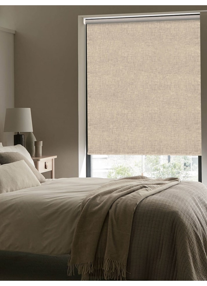 Linen Beige Blackout Cordless Spring Loaded Roller Blind