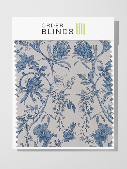 Enhance your decor with the Linley Larkspur Roman Blind, featuring an elegant vintage flowering pattern in baby blue that adds a touch of timeless sophistication and vintage charm to your living space. This window treatment seamlessly marries style and privacy, creating a soothing and inviting ambiance with its captivating floral design.