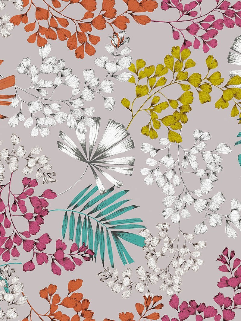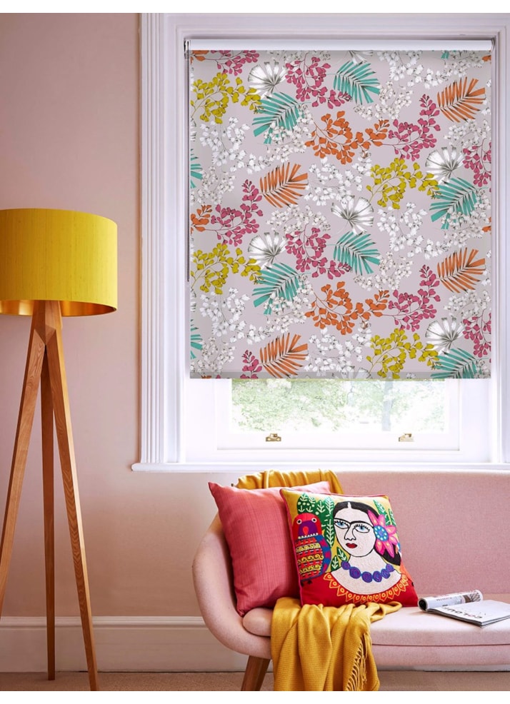 This fun foliage print exclusive to Order Blinds is sure to add zest and liveliness to any space! Inspired by leaves on a forest floor, the bright colour palette of blue, pink, orange and green against a pale grey background makes it an easy way to bring a pop of colour to an otherwise plain room. Just add brightly coloured cushions and accessories in similar tones to carry on the theme.