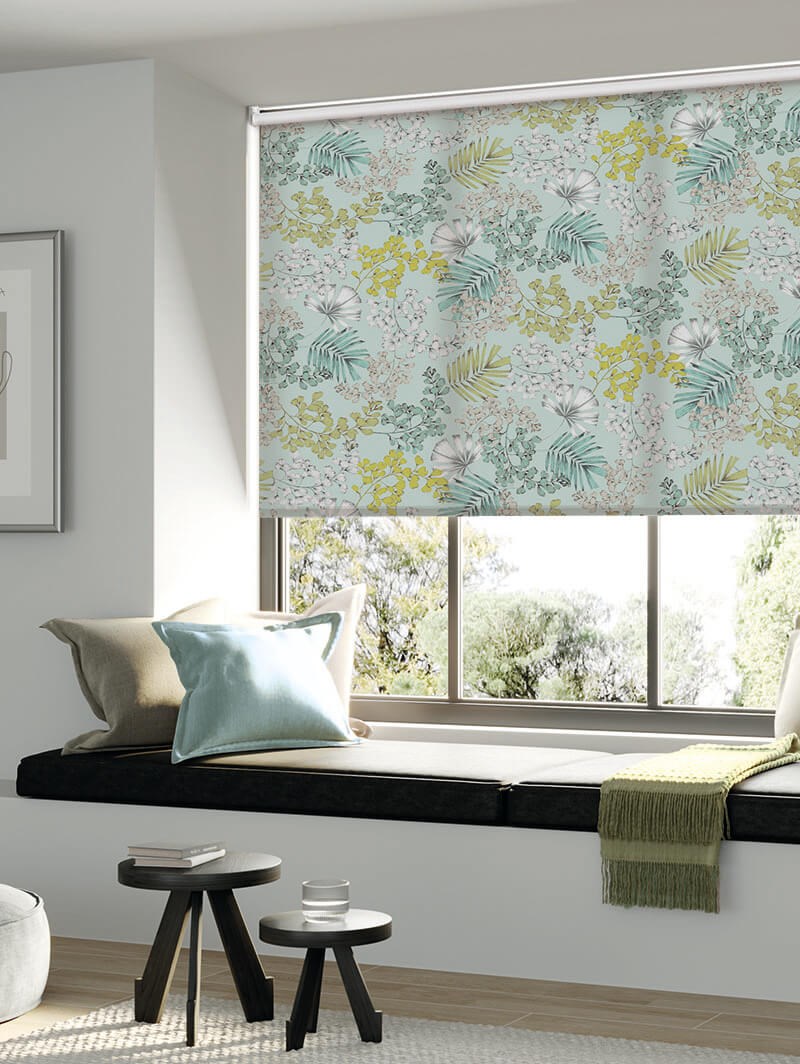 This stunning leaf print is an Order Blinds exclusive and is sure to add zest and liveliness to any space. Inspired by Maidenhair fern leaves on a forest floor, this botanical pattern includes beautiful linework with stunning colour combinations. Available in multiple colourful options or a soft grey for a subtler feel to your space.