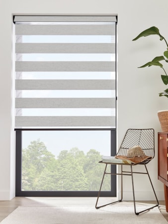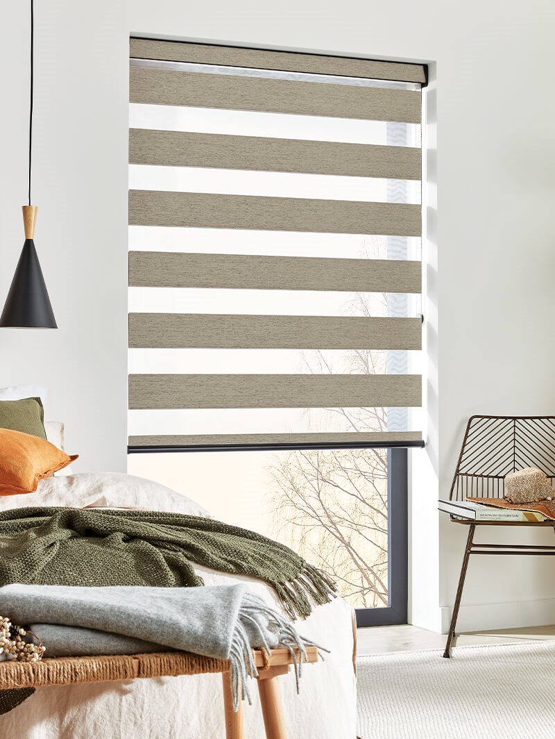 An attractive and innovative solution for many windows, our clever Day and Night blind system works using a looped piece of fabric so that when you raise or lower the blind you can make the alternating sheer and opaque stripes either align or disalign in varying amounts for amazing light control.