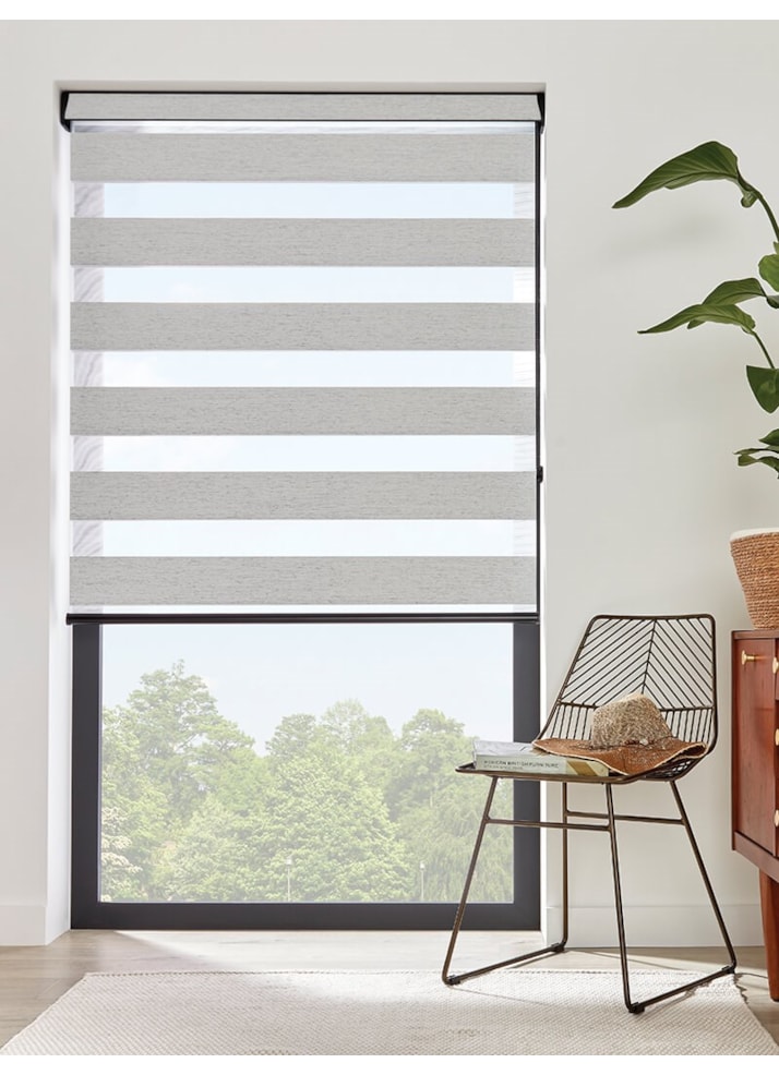 An attractive and innovative solution for many windows, our clever Day and Night blind system works using a looped piece of fabric so that when you raise or lower the blind you can make the alternating sheer and opaque stripes either align or disalign in varying amounts for amazing light control.