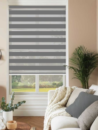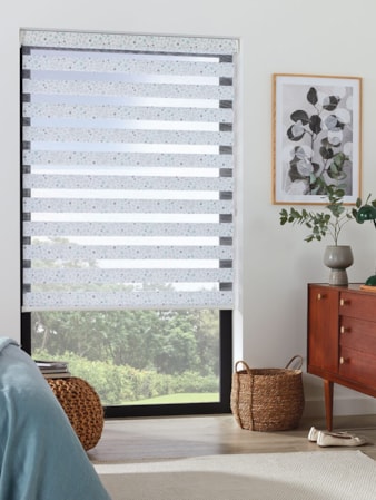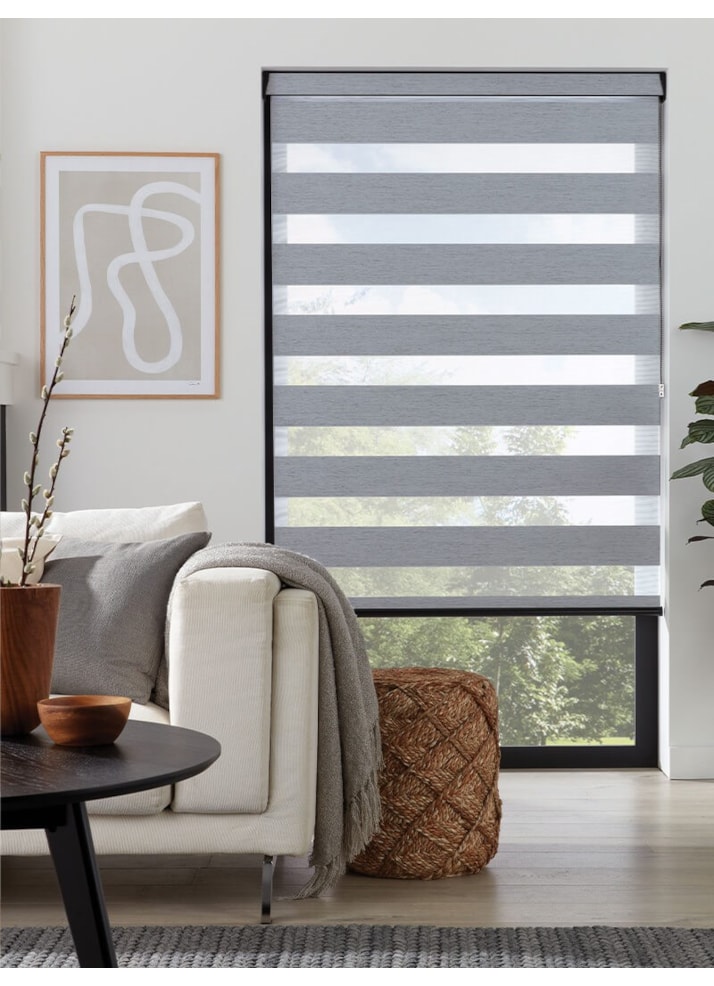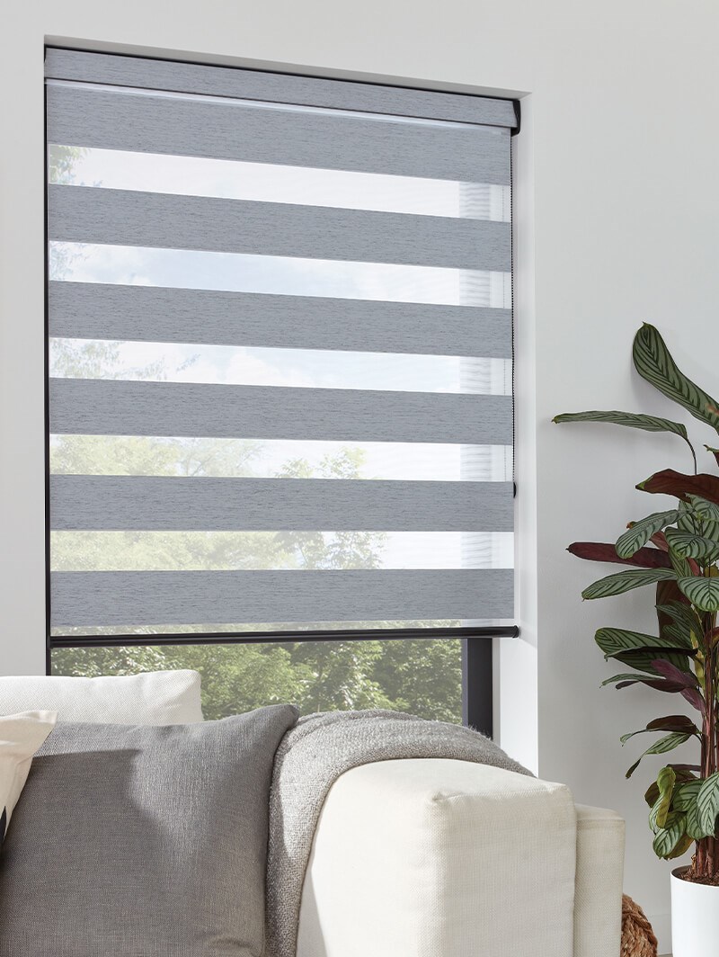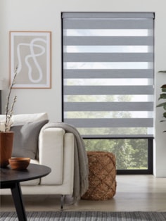 An attractive and innovative solution for many windows, our clever Day and Night blind system works using a looped piece of fabric so that when you raise or lower the blind you can make the alternating sheer and opaque stripes either align or disalign in varying amounts for amazing light control.