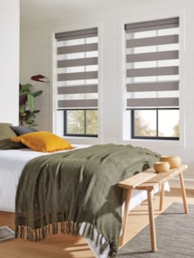 An attractive and innovative solution for many windows, our clever Day and Night blind system works using a looped piece of fabric so that when you raise or lower the blind you can make the alternating sheer and opaque stripes either align or disalign in varying amounts for amazing light control.