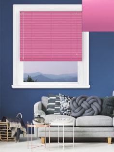 The vitality of our Matte Fuchsia pink aluminium venetian blind provides a splash of colour to your home. Give your kitchen or bedroom a modern sparkle by pairing it with shades of light grey and white, or create a more subtle look with a scattering of wild colours borrowed from the garden.