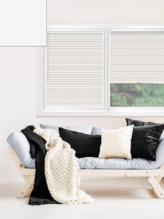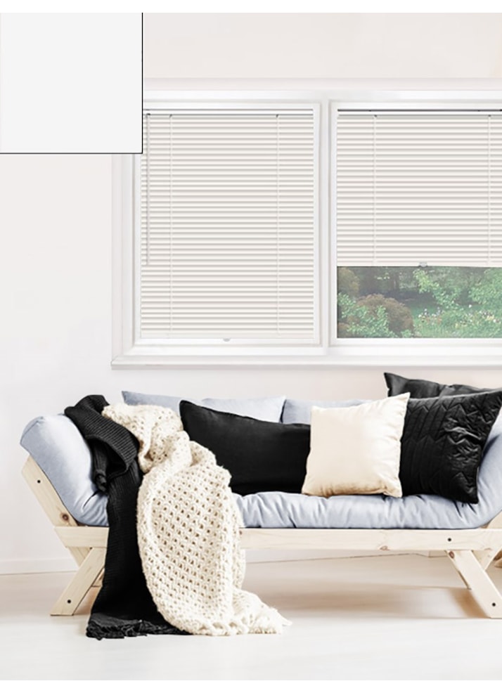 Our off white perfect fit venetian blind offers an opportunity to tone down the intensity without losing the balance of minimalist spaces. Combining various shades of white in a single room allows for the introduction of different textures and sheen so that light will reflect uniquely throughout the room.