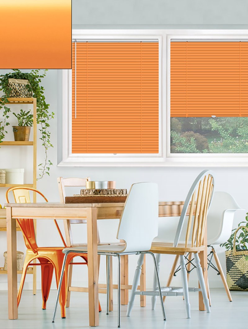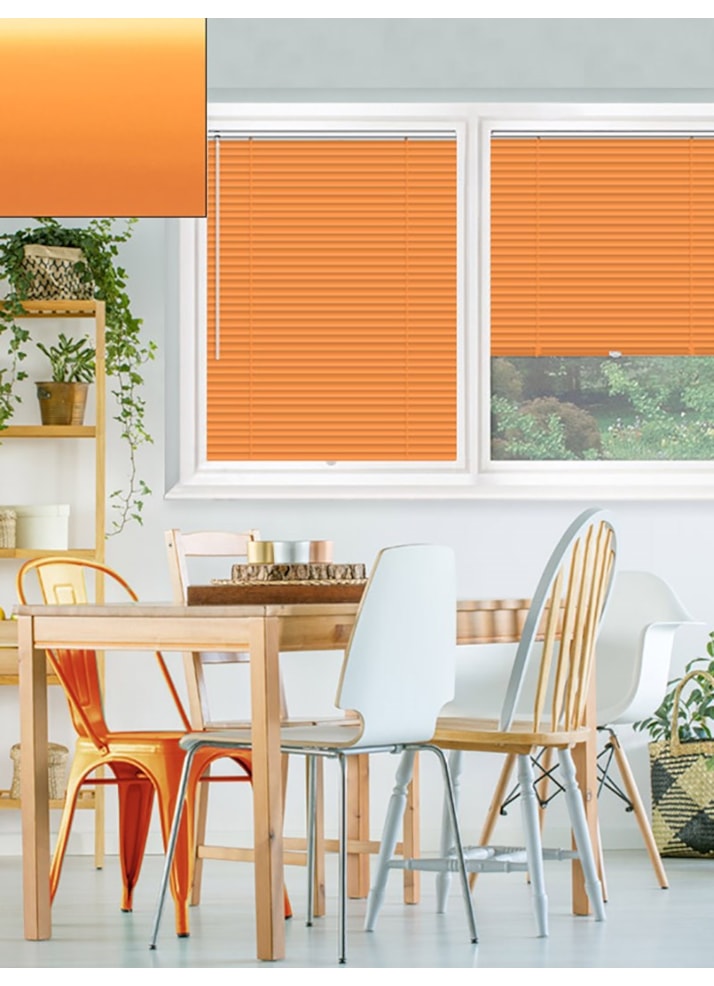 This tasteful, orange aluminium venetian is ideal for anyone wanting to achieve a modern look. It''s matte shade is attractive without being too in your face. This venetian is ideal for those rooms which need a little extra colour to brighten them up.