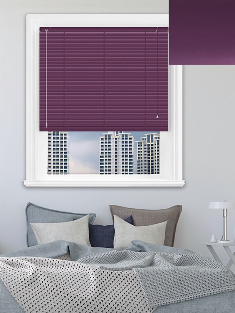 Without overwhelming your colour scheme, our Matte Passion purple venetian blind provides an elegant and unique look when paired with a white or cream colour scheme, with crisp black or brightly coloured room furnishings. A creative window dressing to liven up your home.