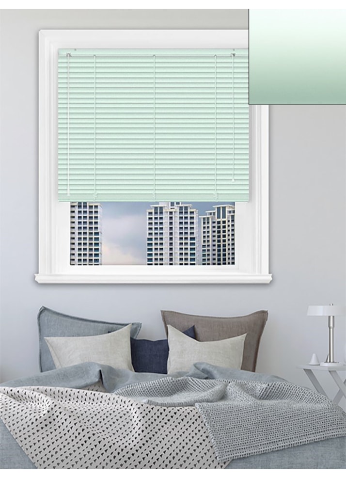 The soothing Peppermint shade of our pastel green aluminium venetian blind lends a touch of elegance and sophistication to your home, brightening it up instantly. Ideal for a bedroom or a living room, pair with shades of light grey, cream or dark brown accents for a fresh and modern look.