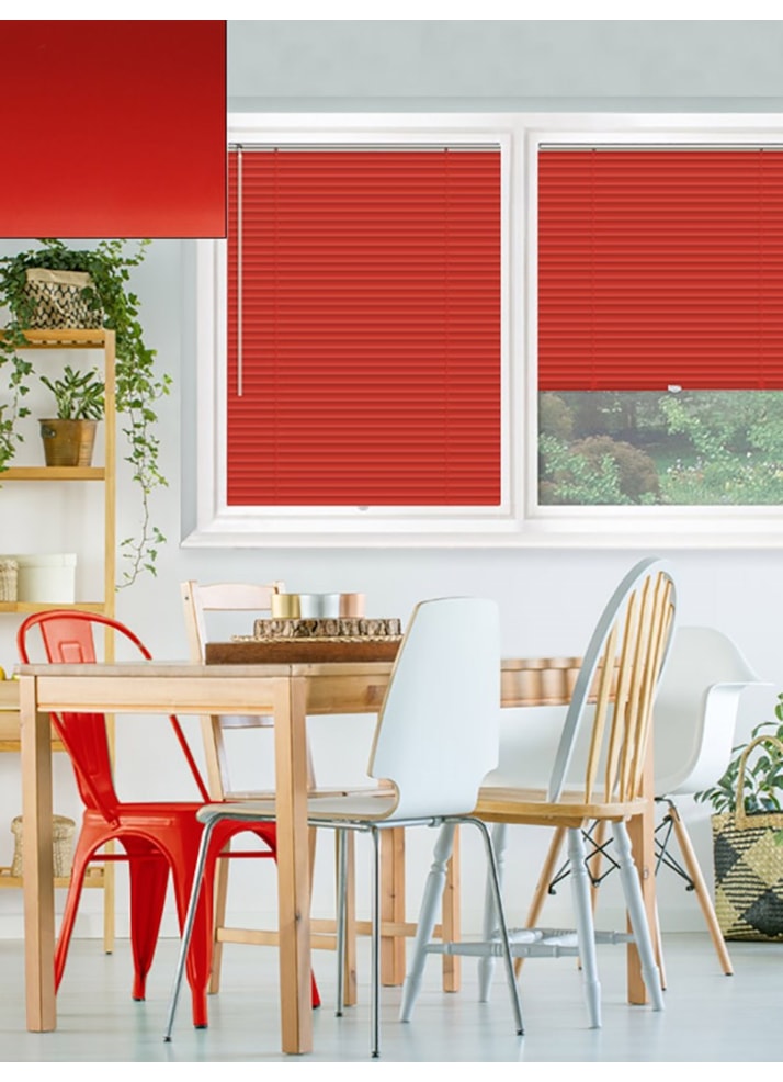 A rich, plain red colour features on our Matte Scarlet blind. Although plain, this colour can be exciting to work with. A popular shade found within kitchens and dining rooms of homes as it said to boost ones appetite.