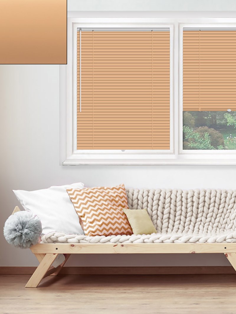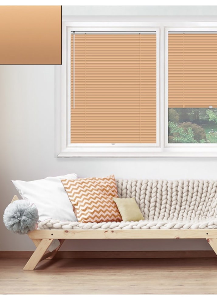 Our pale orange aluminium venetian is ideal for those who want to create a modern design. This blind would be best suited to either a kitchen or dining room.