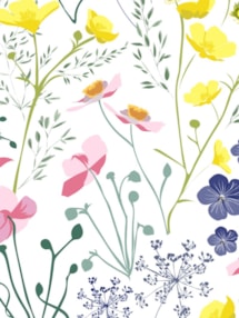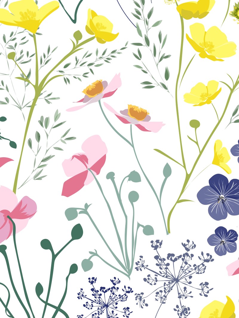 A year round reminder of the abundance and beauty of an English springtime, Lorna was inspired to create this airy and colourful print when out walking her dog Jenkins throug the countryside. Shades of pink, blue, green and yellow against a crisp white background make this charming print easy to work into many design schemes.