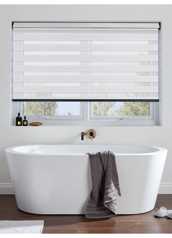 An attractive and innovative solution for many windows, our clever Day and Night blind system works using a looped piece of fabric so that when you raise or lower the blind you can make the alternating sheer and opaque stripes either align or disalign in varying amounts for amazing light control.
