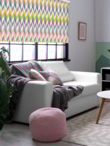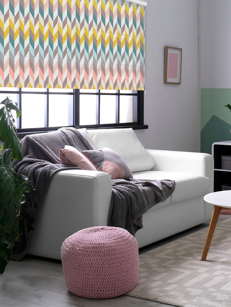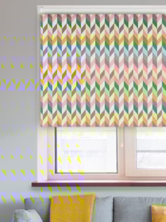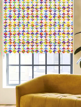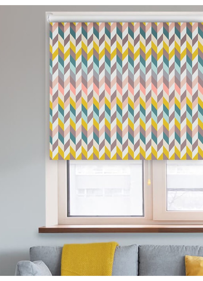 Mustard, taupe, teal and salmon pink shades work together to create a truly stunning and eye catching design on this window blind. Perfect for lounges, kitchens and bathrooms.