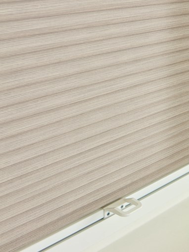 A timeless, soft, warm beige hue on a stripy textured fabric. These blinds are expertly crafted to allow light to gently filter into your space whilst offering the perfect balance between privacy, style and embracing the beauty of daylight. Effortlessly designed to fit directly onto your UPVC frame via brackets that slide behind the rubber beading, they offer exceptional versatility, especially as the double handed system allows you maximum adjustability.