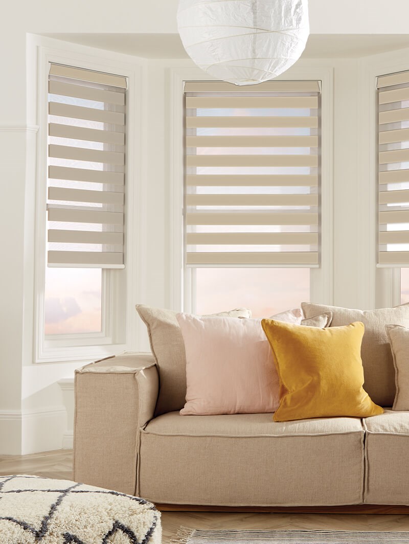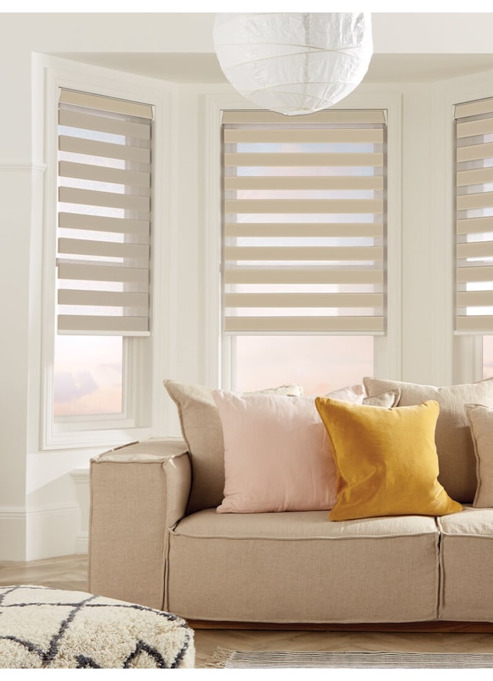 Available in 4 colourways, Montage day and night blinds are simple and elegant, with a premium sheer panel, offering a clear view when the blind is open.