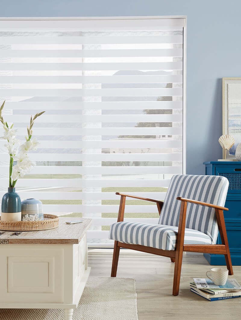 Available in 4 colourways, Montage day and night blinds are simple and elegant, with a premium sheer panel, offering a clear view when the blind is open.