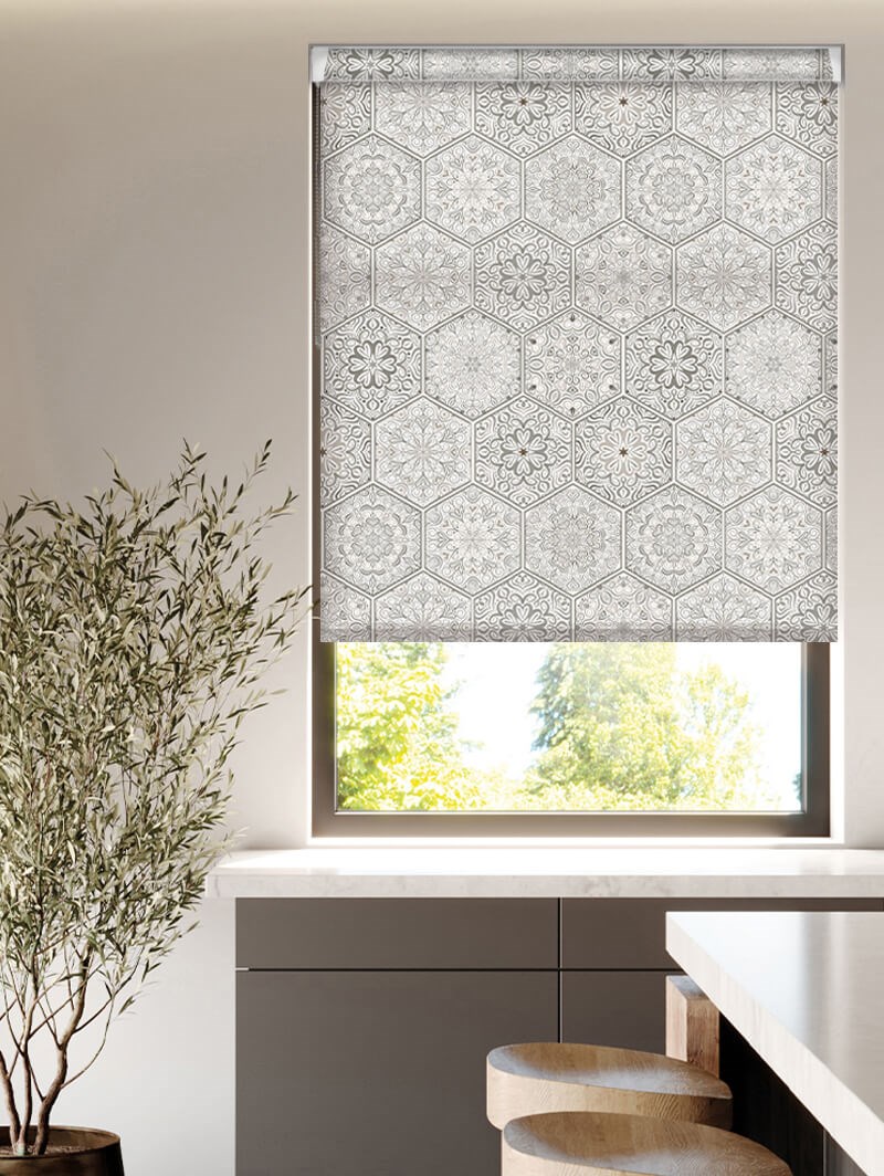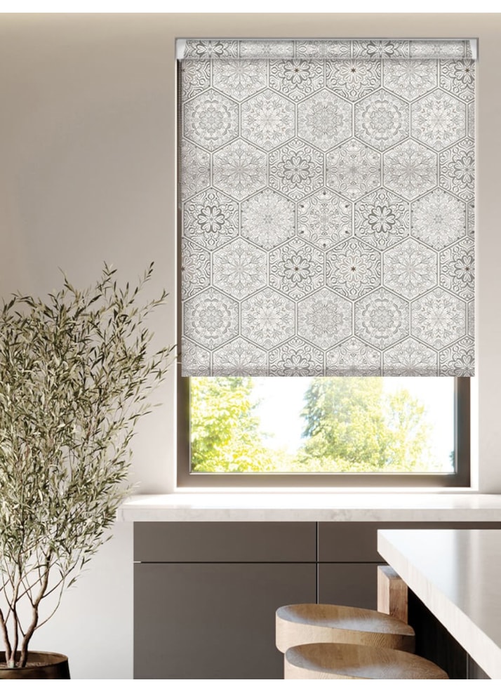 Elegantly detailed, this tile print blind inspired by the beautiful traditional tiling of Morocco looks stunning with it's array of blue shades against a clean white background. This is a wonderful choice for a bathroom, kitchen or wash room.c