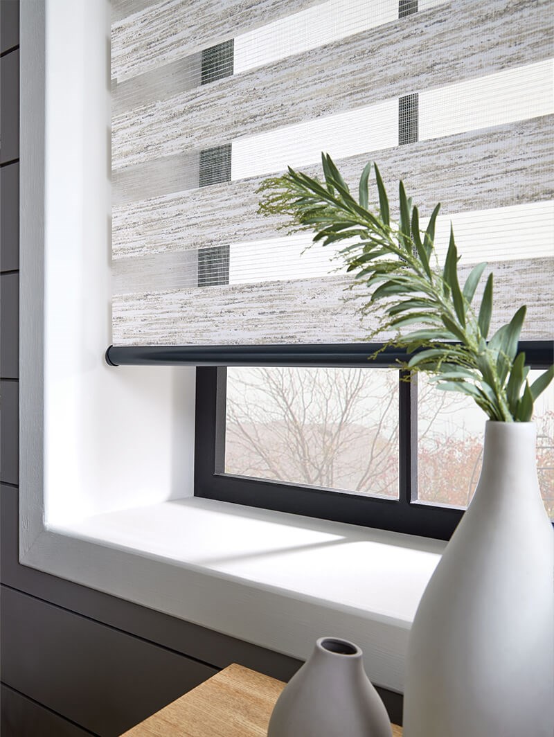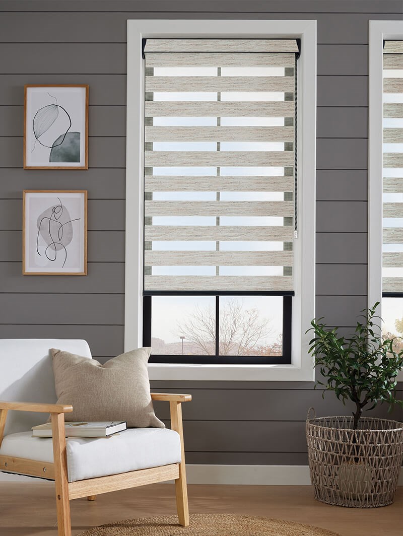 With a range of 4 tones to choose from, our Nabis Day and Night blinds provide a natural finish to your window. With a design reminiscent of the stratification on a cliff face, these blinds help soften the transition from your home to the outside world.