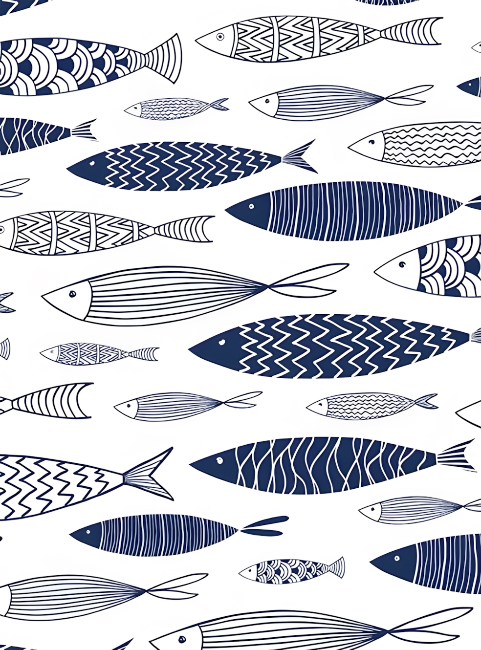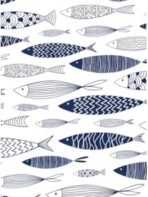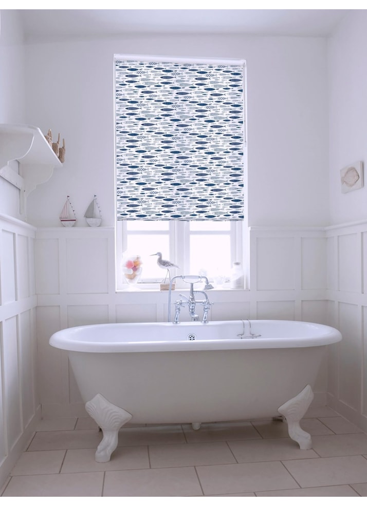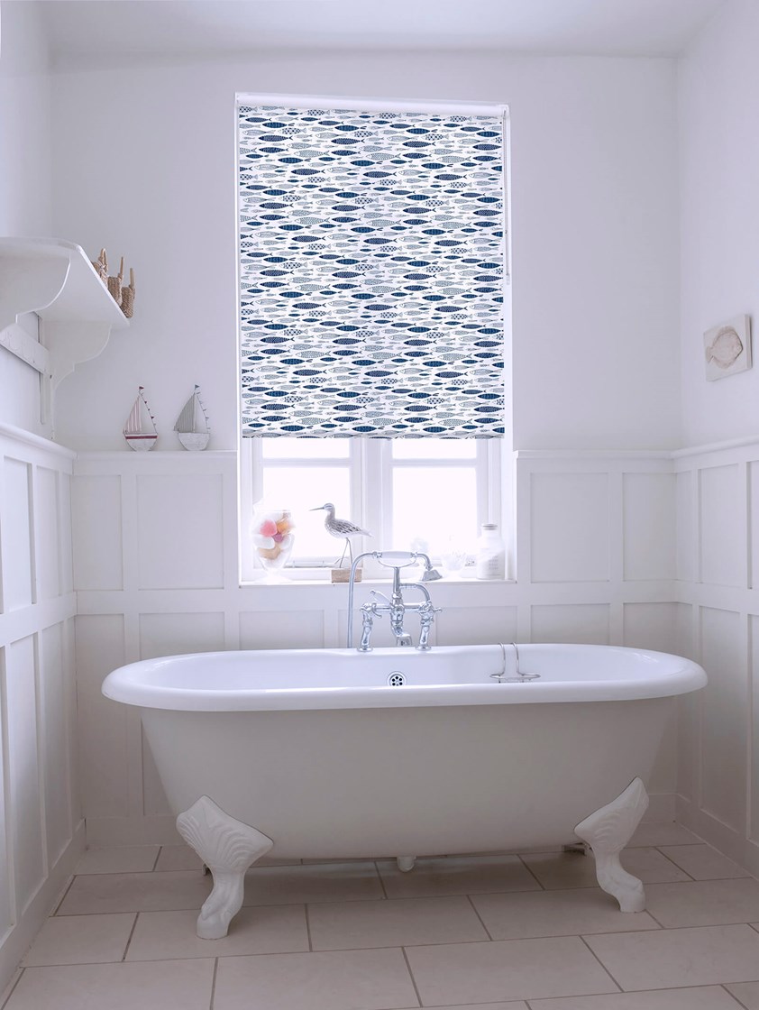 This Scandinavian inspired design portrays a school of fish swimming across a bright white background, making this an eye catching window blind.