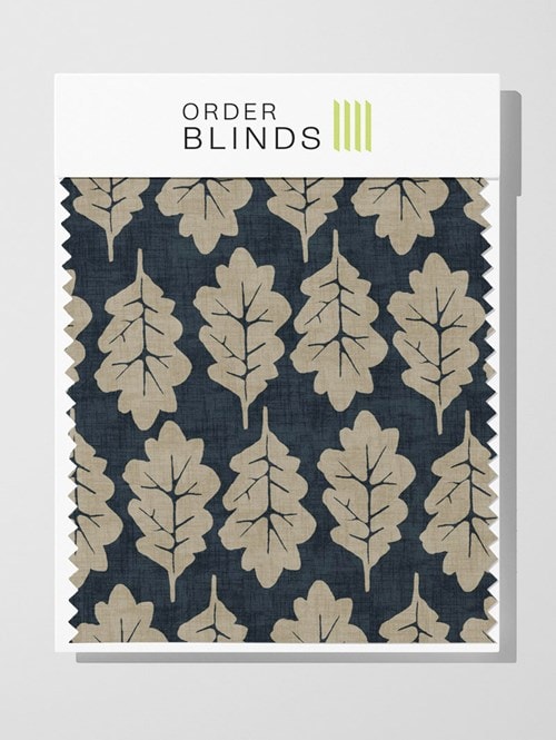 Elevate your decor with the Oak Leaf Midnight Roman Blind, featuring a simple oak leaf pattern in muted midnight blue. Accents of modern beige create a captivating and timeless ambiance, adding a touch of natural beauty and contemporary elegance to your space.