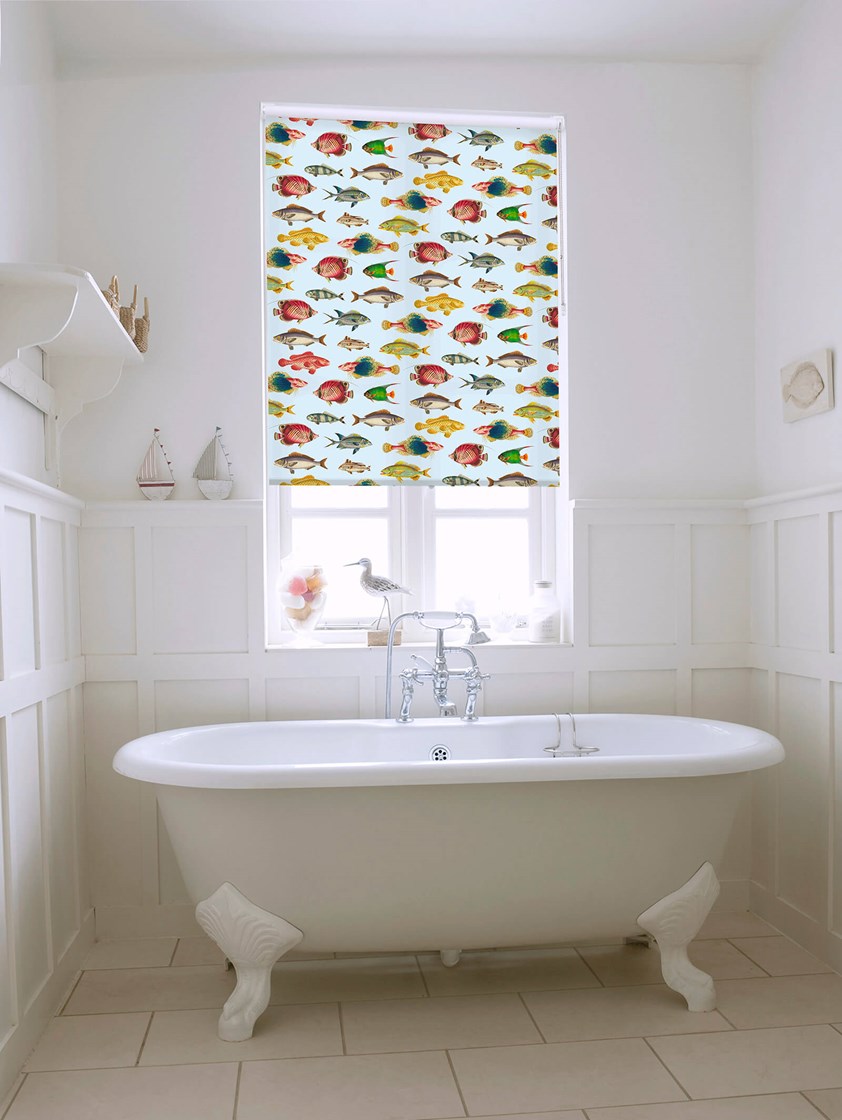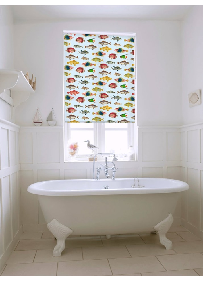 This sophisticated design of vintage tropical fish is a stylish addition to a grown up bathroom being reminiscent of natural history illustrations. The sky blue background is a lovely contrast to the bright colours of the fish creating an eye catching, stylish print.