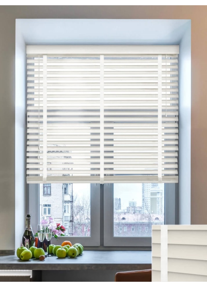 The off-white faux wood venetian blind is a great choice for a whole array of windows in your home. Being incredibly versatile and tactile in finish this blind is an ideal choice for just about any window where you want both a neutral shade and control over the light entering your home.