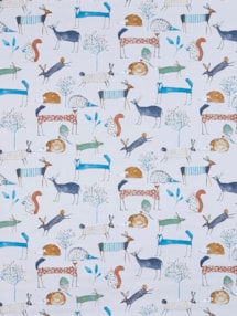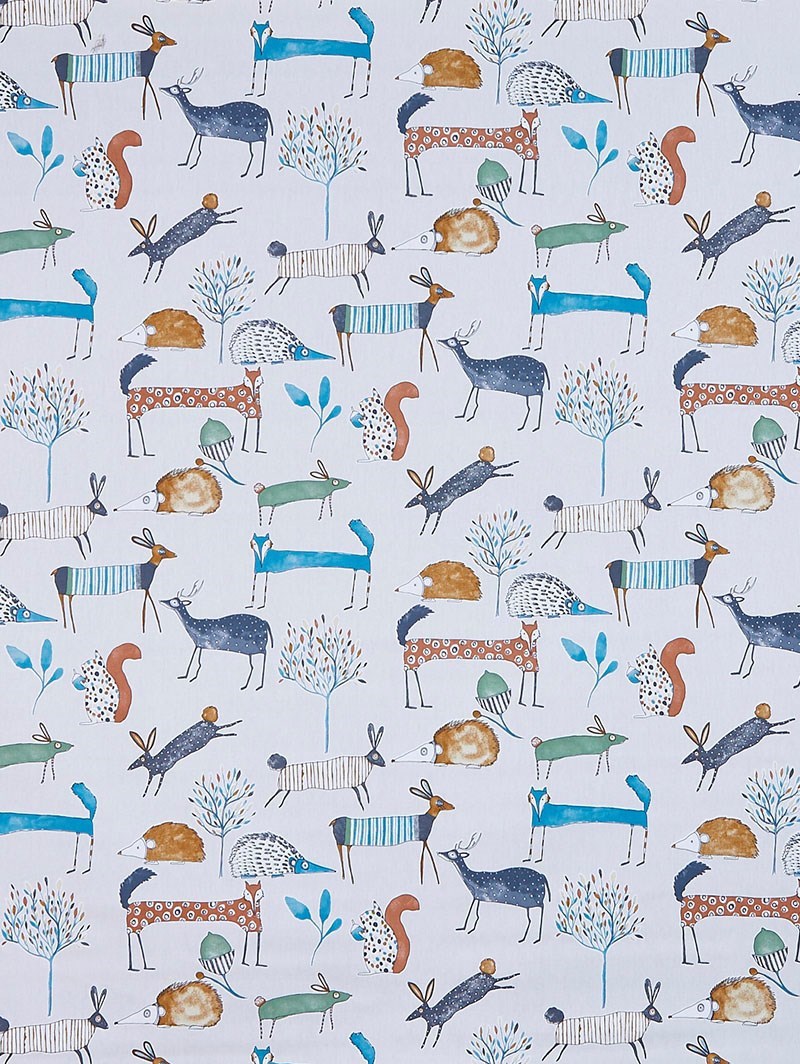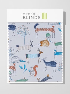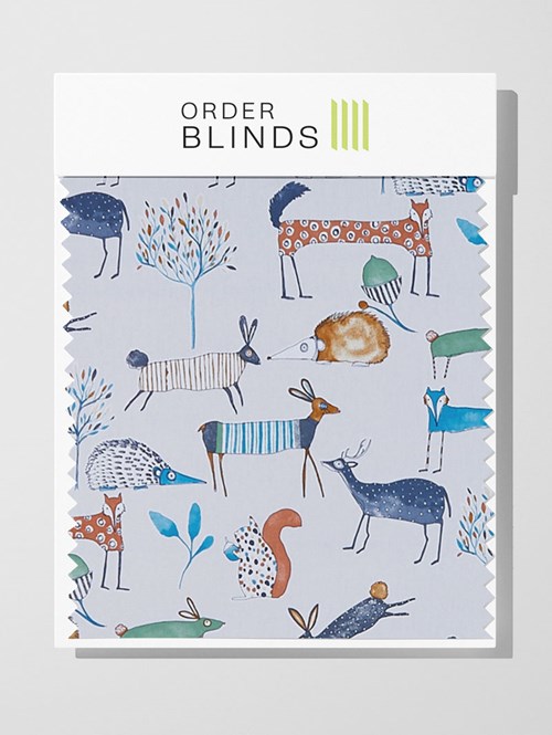 Transform your decor with the Oh My Deer Colonial Roman Blind, showcasing an abstract woodland creature pattern in sky blue and natural brown hues that adds a whimsical touch of nature-inspired charm to your living space. This window treatment seamlessly marries style and privacy, creating a playful and inviting ambiance with its captivating design.