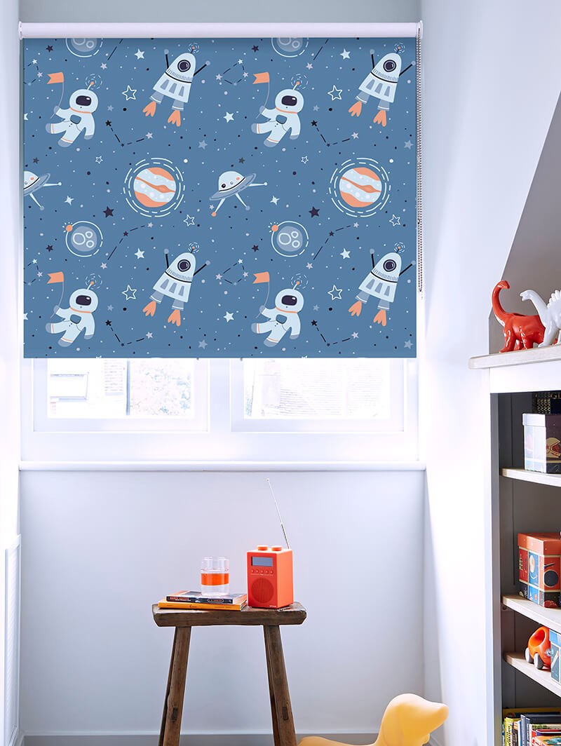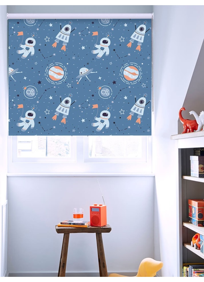 Inspire your little astronaut with this fun space themed blind scattered with stars, space ships, planets and spacemen.