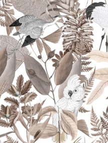 Stunning Cockatoos and elegant cranes sit amongst the beautiful botanical elements that make up this exquisite design. This highly detailed, vintage bird pattern is available in a wide range of on-trend colourways including navy blue, blush pink, neutral options and more.