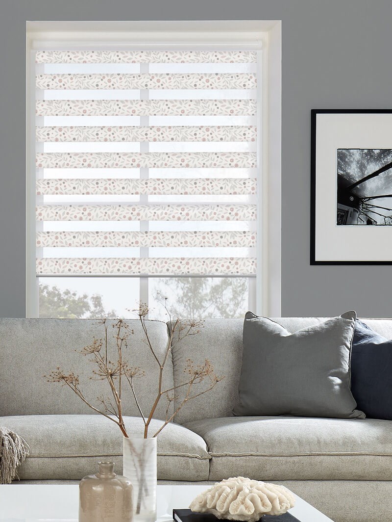 The bright, floral design of our Origine day and night blinds give a playful touch to your decor. In a range of 3 popular colourways, they pair perfectly with soft teals and mustard colour schemes.