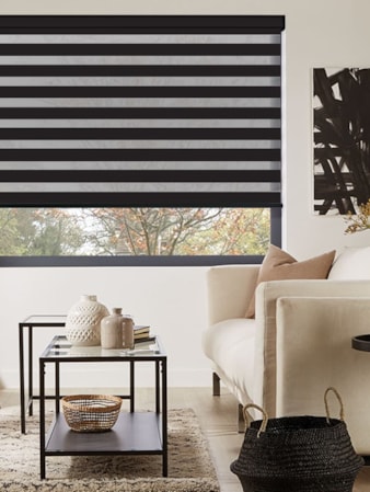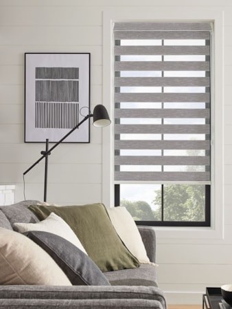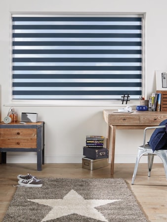 An attractive and innovative solution for many windows, our clever Day and Night blind system works using a looped piece of fabric so that when you raise or lower the blind you can make the alternating sheer and opaque stripes either align or disalign in varying amounts for amazing light control.