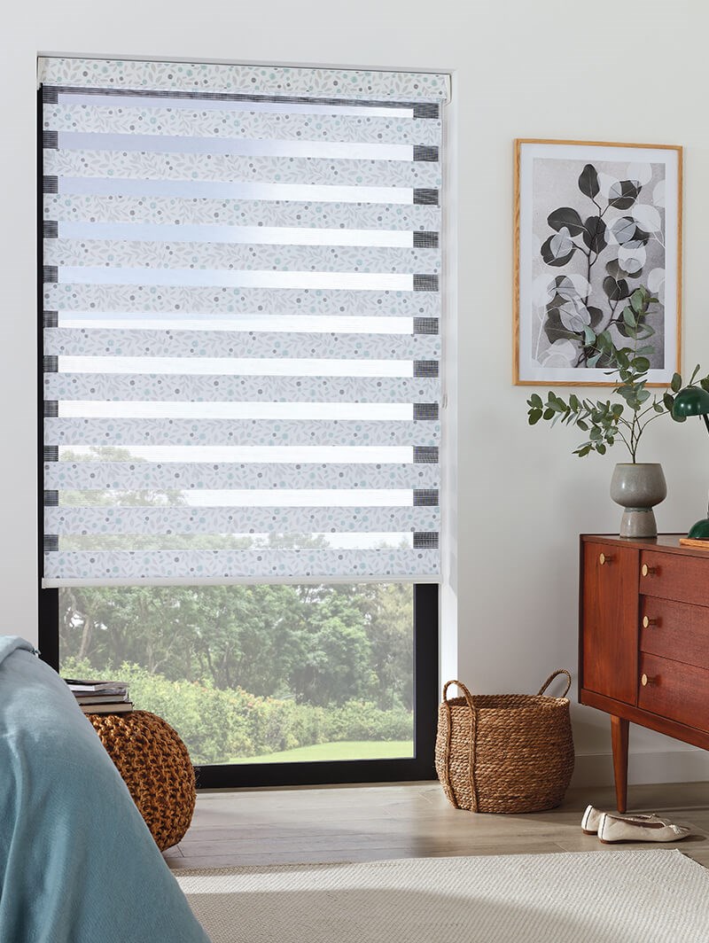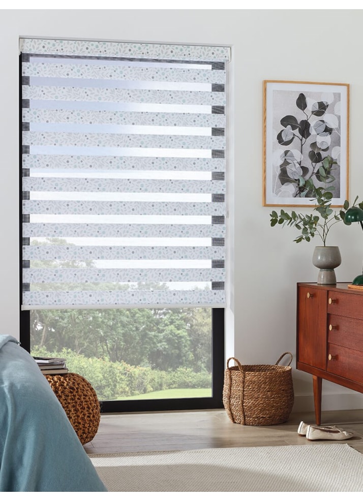 The bright, floral design of our Origine day and night blinds give a playful touch to your decor. In a range of 3 popular colourways, they pair perfectly with soft teals and mustard colour schemes.