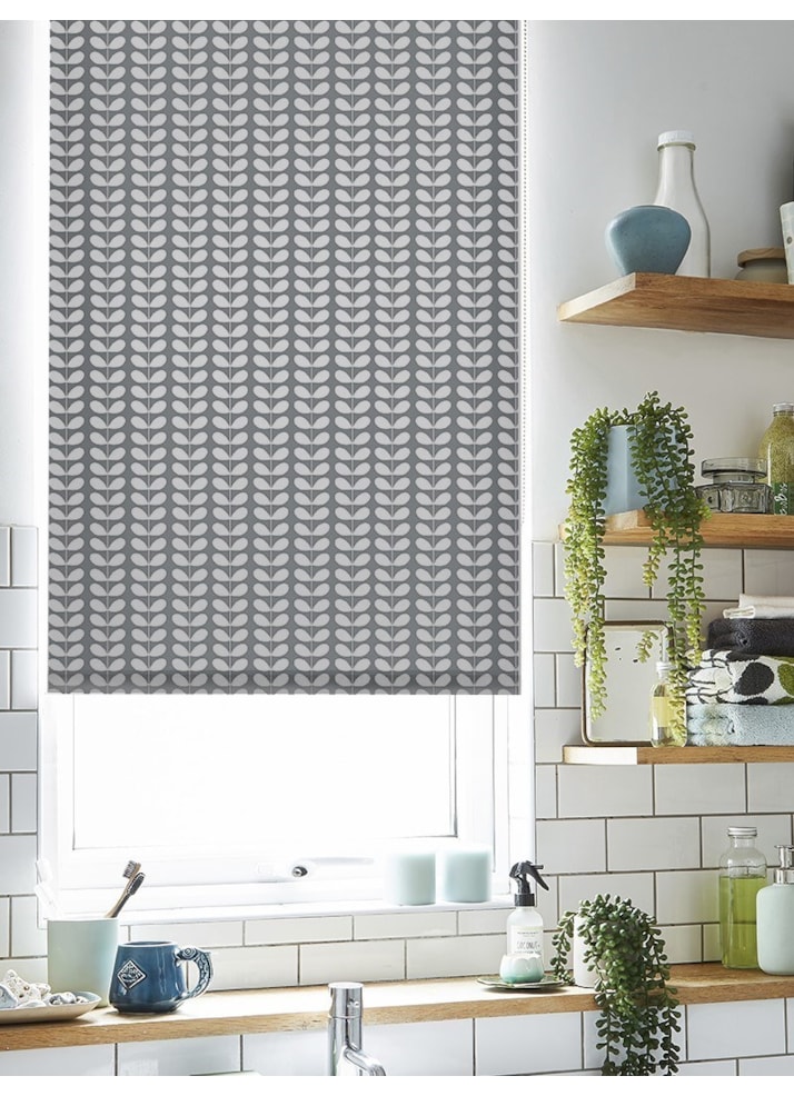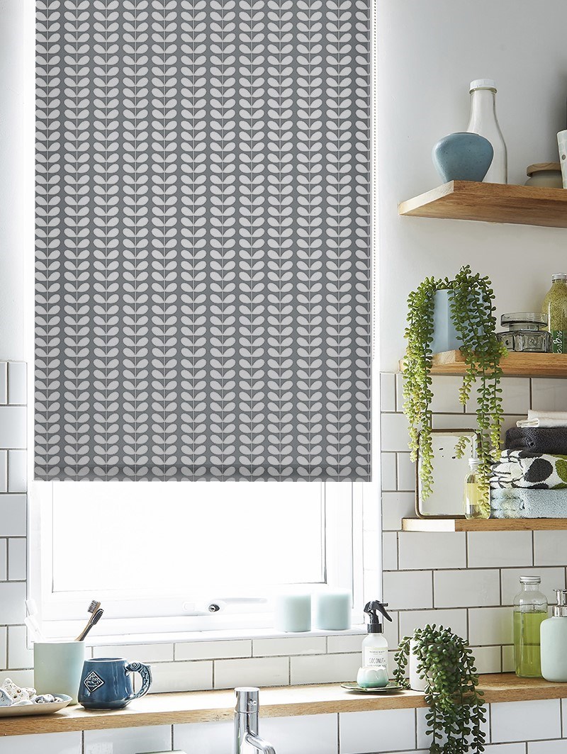 Orla Kiely Woven Tiny Stem Cool Grey Roller Blind