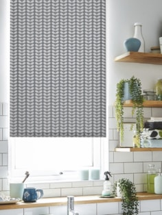 Featuring Orla's iconic Stem design at a small scale woven into a mid grey jacquard finish our Orla Kiely Woven Tiny Stem Cool Grey Blind is an attention grabbing way to add dimensions and print to a room.