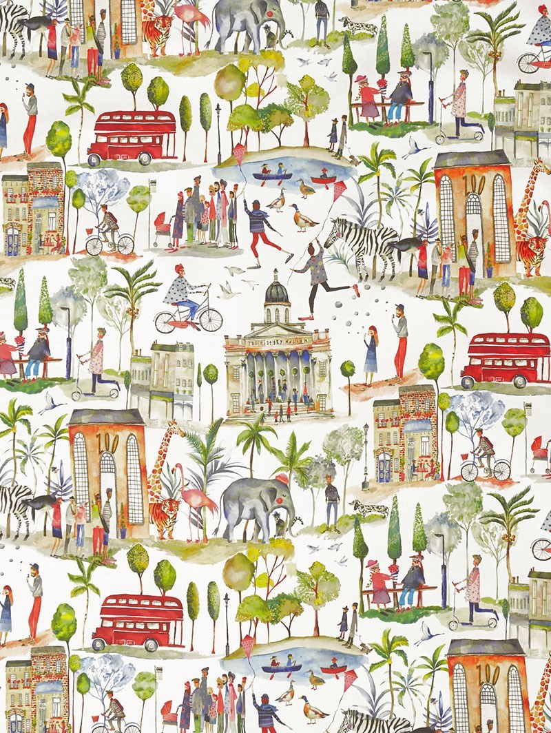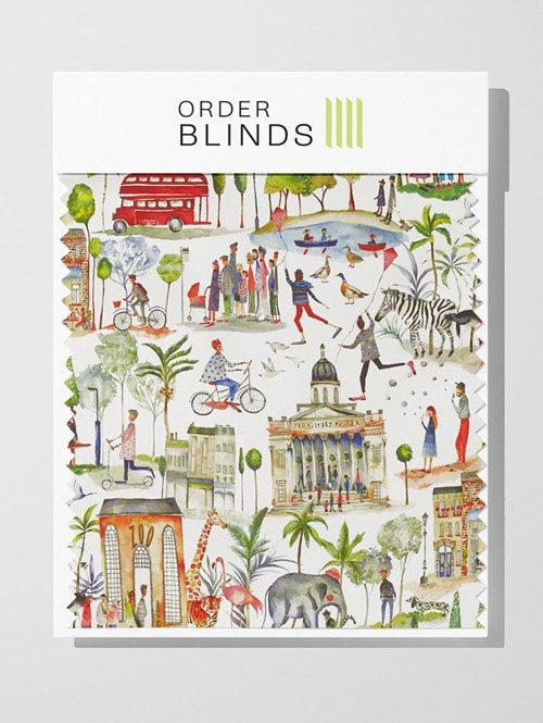 Elevate your decor with the Out and About Paintbox Roman Blind, featuring a whimsical watercolour cityscape adorned with charming zoo animals, adding a playful and imaginative touch to your living space. This window treatment seamlessly marries style and privacy, creating a vibrant and inviting ambiance with its captivating urban safari theme.