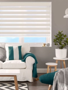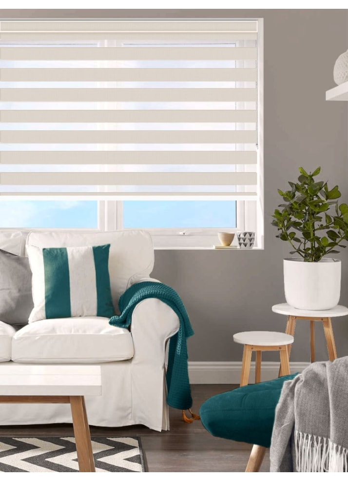 An attractive and innovative solution for many windows, our clever Day and Night blind system works using a looped piece of fabric so that when you raise or lower the blind you can make the alternating sheer and opaque stripes either align or disalign in varying amounts for amazing light control. Operating it to the point where the stripes align allows the sheer areas to let in light in while if you adjust them to disalign all the light is then blocked by the opaque stripes. Just use the chain operation to move the stripes to any position you wish to let the perfect amount of natural light enter the space as you need it.