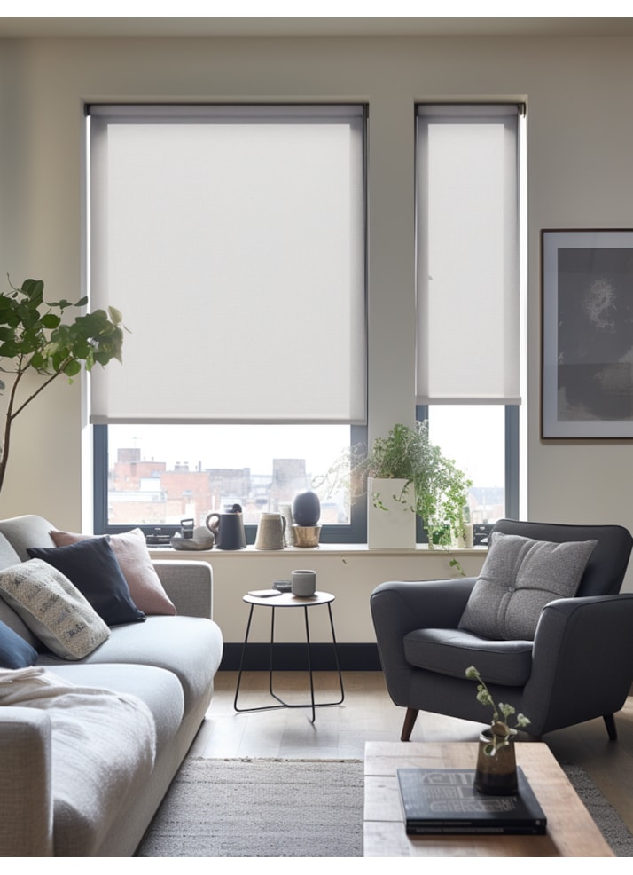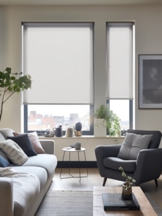 Our screen fabric blinds in this collection are made from a PVC and Polyester Mesh which provide solar control for particularly bright rooms. This is achieved by weaving the materials together in an open weave that allows light through but blocks people seeing into your home.