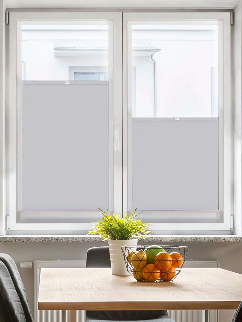 Create a contemporary and traditional styled room with our perfect fit light grey blackout roller blind, a perfect pairing with shades of white and also pastel colours. An ideal addition to a living area, bedroom or a conservatory.