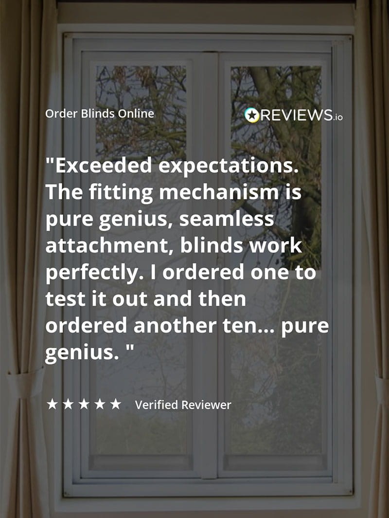 Ordering was simple, blinds delivered promptly and fitted perfectly. Very pleased with whole experience. Thank you.