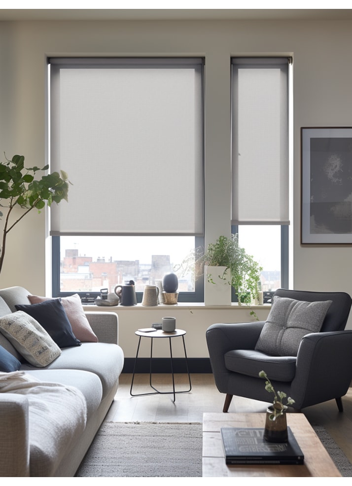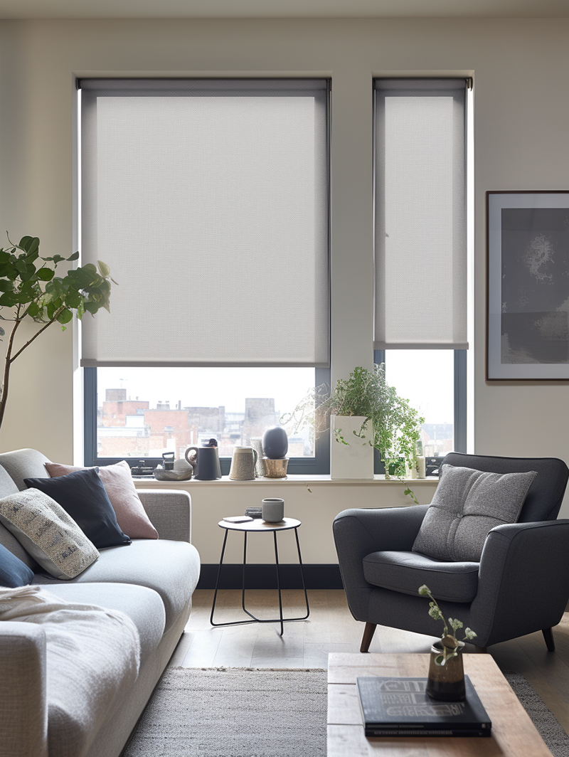 • Our screen fabric blinds in this collection are made from a PVC and Polyester Mesh which provide solar control for particularly bright rooms. This is achieved by weaving the materials together in an open weave that allows light through but blocks people seeing into your home.