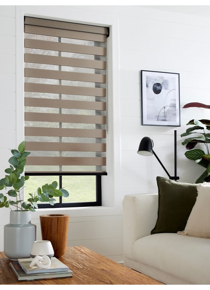 Our range of Piazza day and night blinds is available in 6 colours. The sheer panels in this range, providing a striking contrast to some of the lighter shades in this range.