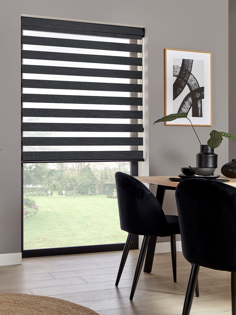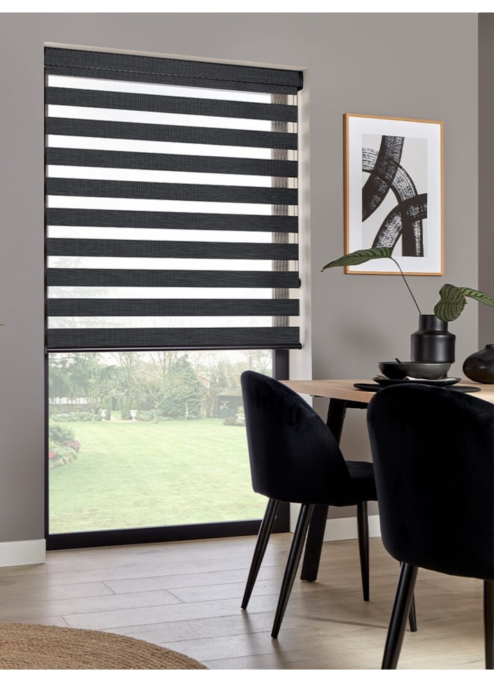 An attractive and innovative solution for many windows, our clever Day and Night blind system works using a looped piece of fabric so that when you raise or lower the blind you can make the alternating sheer and opaque stripes either align or disalign in varying amounts for amazing light control.